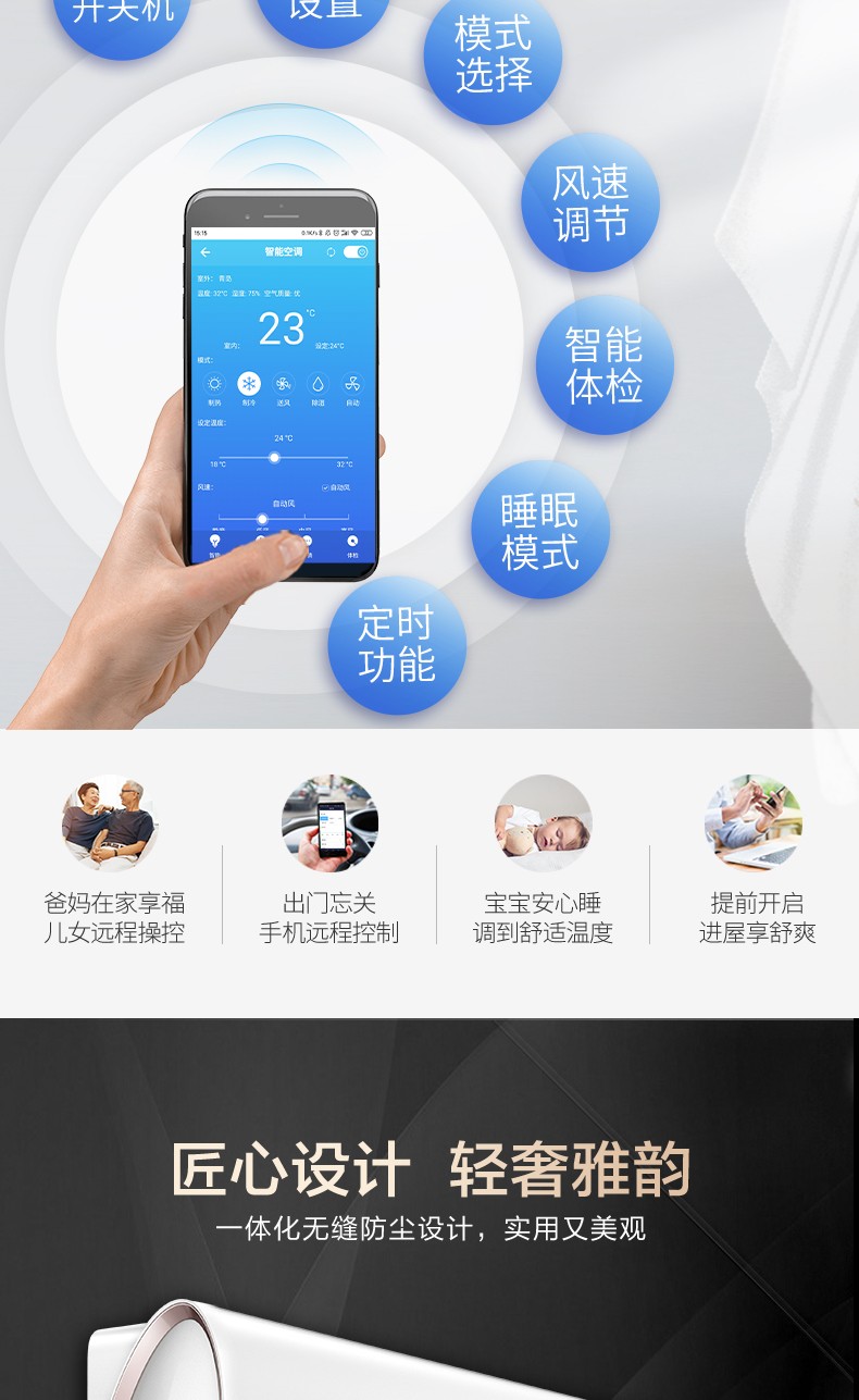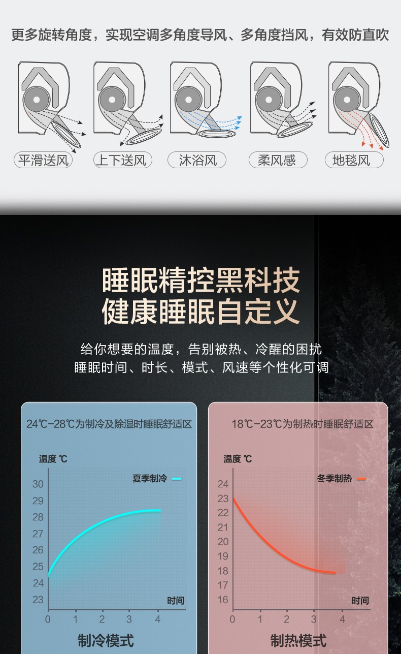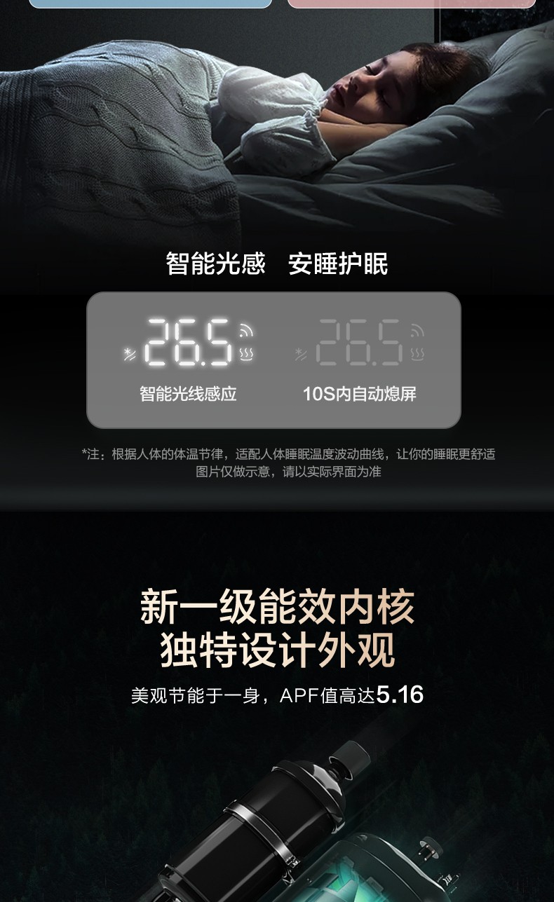 163°全域柔风不直吹、18dB超静音仿生降噪、4+N智能睡眠曲线精准匹配需求,搭配专利抗菌防霉滤网与自清洁技术,让宝宝整夜酣睡、妈妈安心入眠