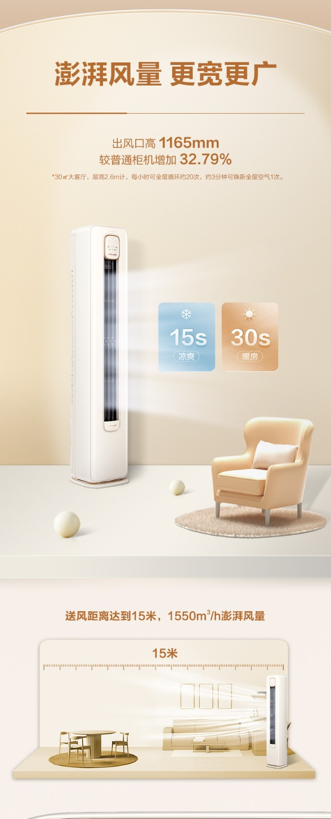 行业顶配新风空调,微正压五重过滤,新风可实现烘房除醛功能。在离线智慧语音,张口轻松操作。1810m³/h澎湃风量,上下分段防直吹。15秒凉爽30秒暖房 冷暖高效不等待。