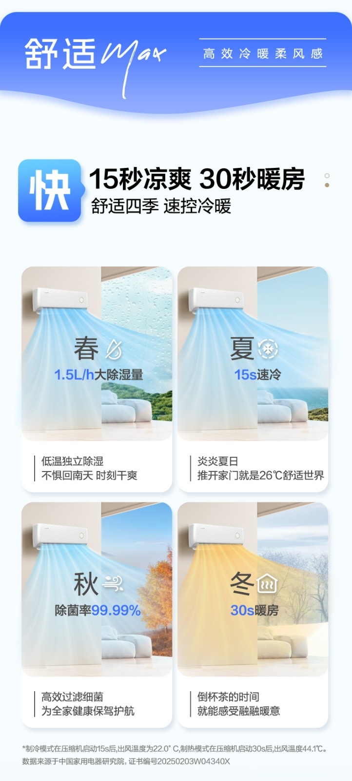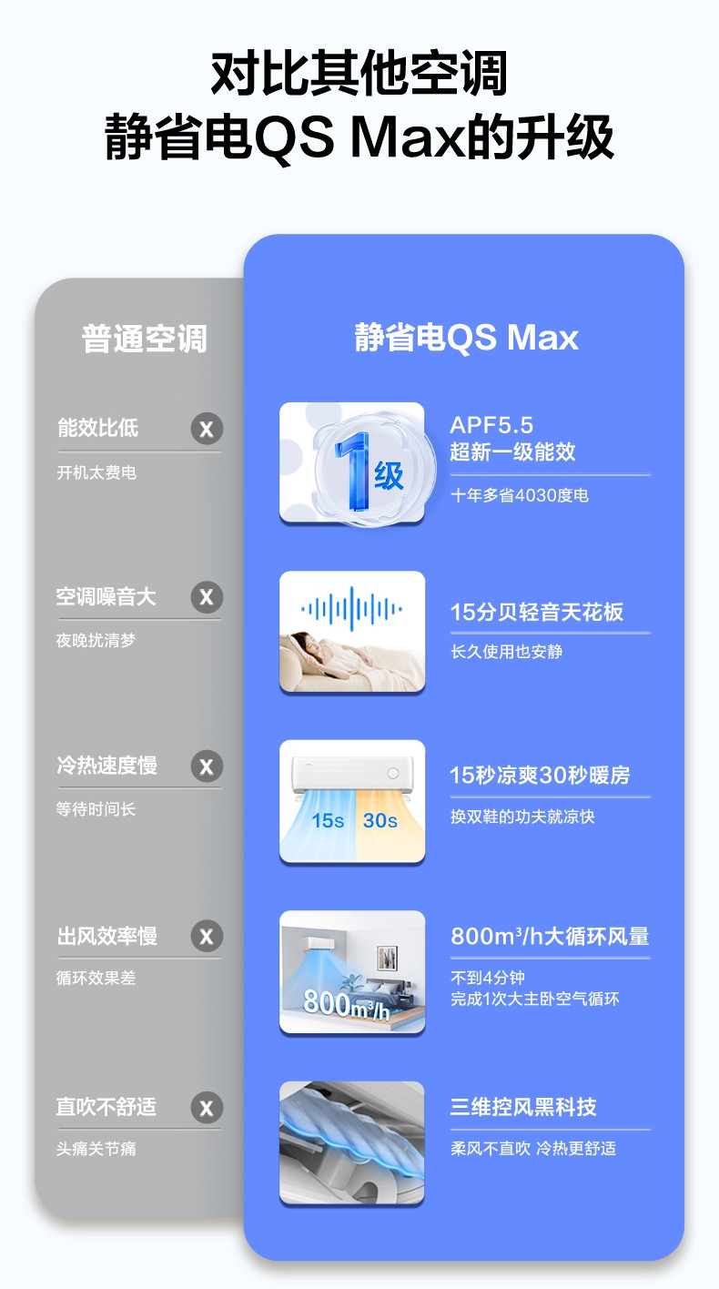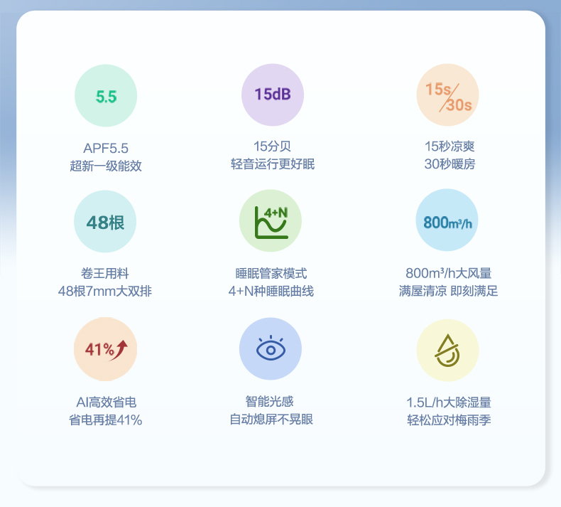 堆料满配,买得起的神机 AI省电,省电看得见 15分贝,轻音天花板 15S凉爽 30S暖房 快速冷热