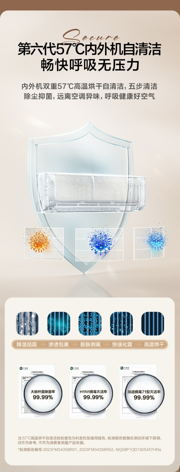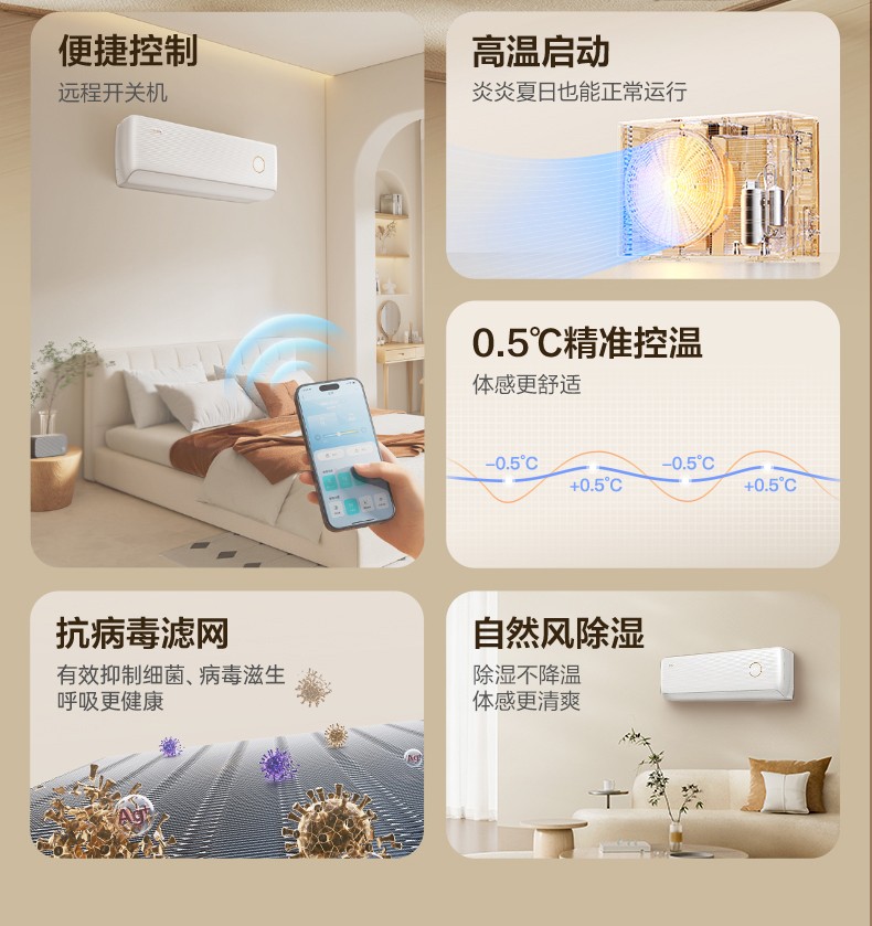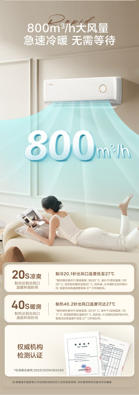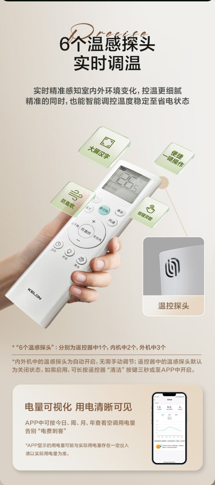 16分贝轻音好眠,从温度,声音,光线等,全方位呵护顾客的睡眠 拥有AI省电模式,对比制冷模式最高可再省电35%