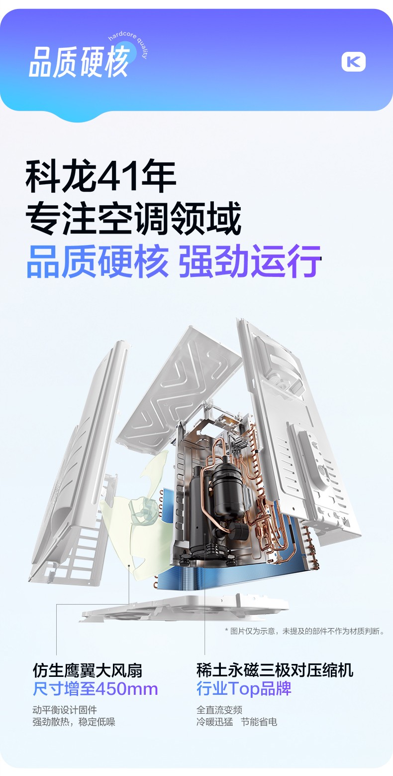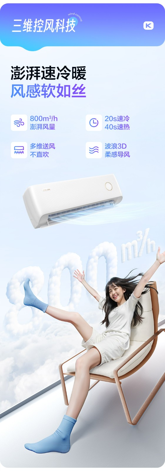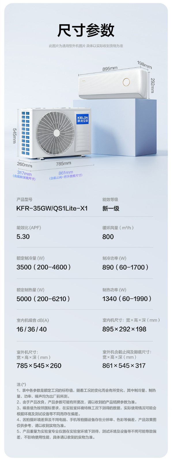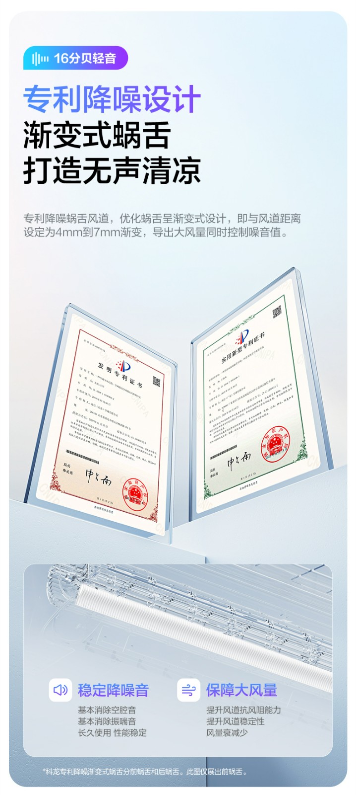 配置高,搭载双排冷凝器、双排蒸发器、500级铜线电子膨胀阀、行业TOP3品牌压缩机等,APF值高达5.3,远超国家一级能效标准。16分贝轻音好眠,行业中噪声至低的空调。800m³/h的巨大风量,实现20S凉爽 40S暖房的快速冷热效果。
