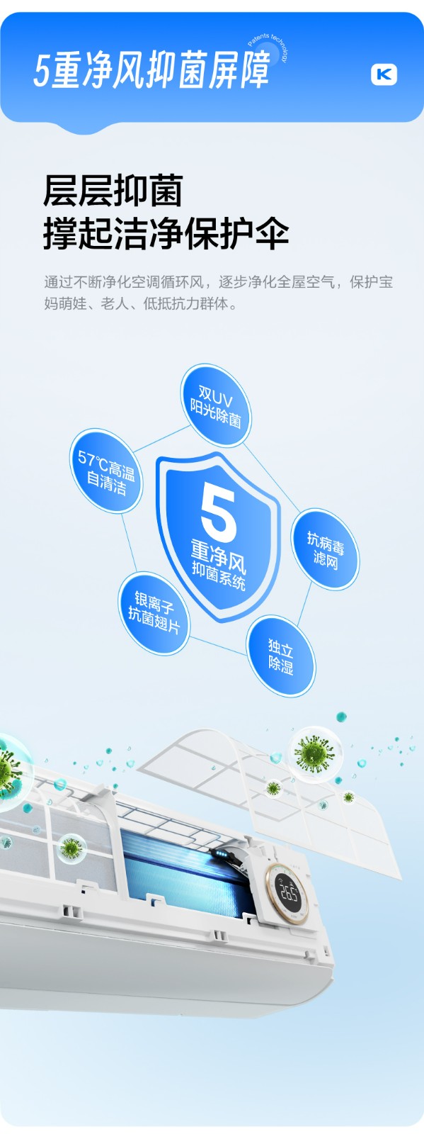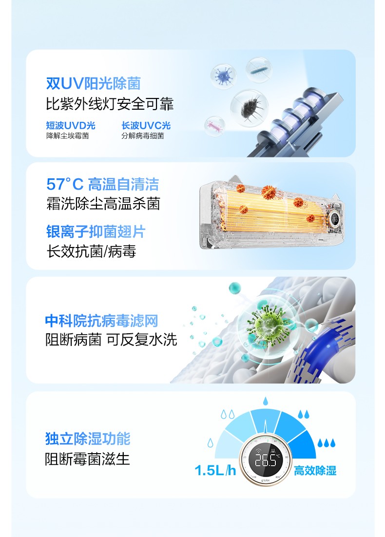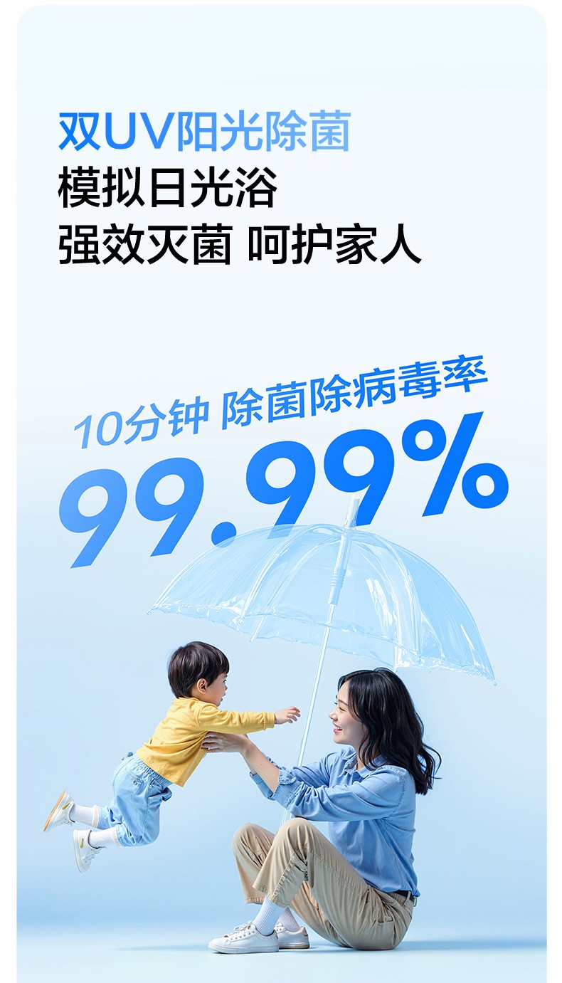 五重抑菌净风,母婴级UVC+UVD双路抑菌