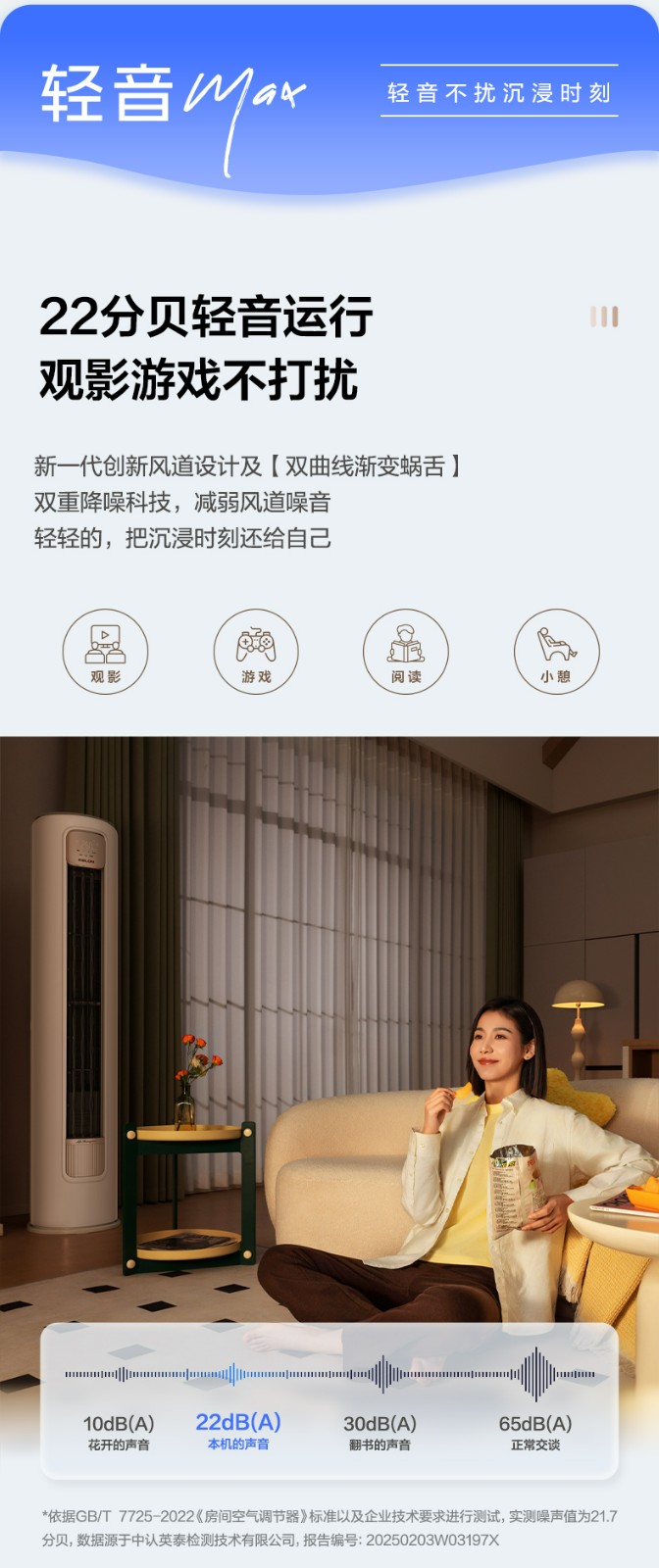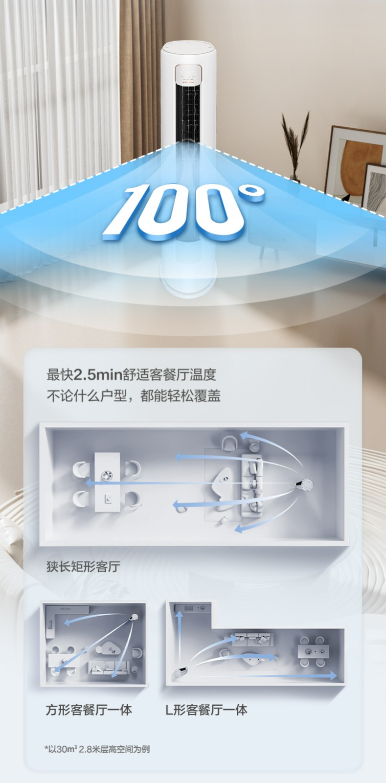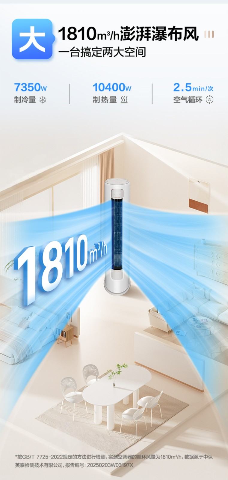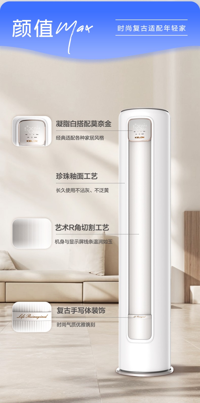 一款配置高、性能强、出风柔、又省电静音的柜机