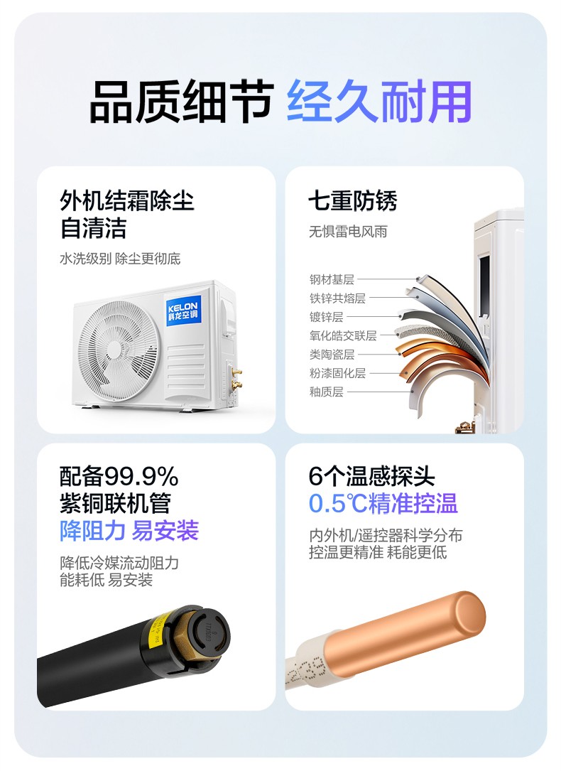 配置高,搭载双排冷凝器、双排蒸发器、500级铜线电子膨胀阀、行业TOP3品牌压缩机等,APF值高达5.3,远超国家一级能效标准。16分贝轻音好眠,行业中噪声至低的空调。800m³/h的巨大风量,实现20S凉爽 40S暖房的快速冷热效果。
