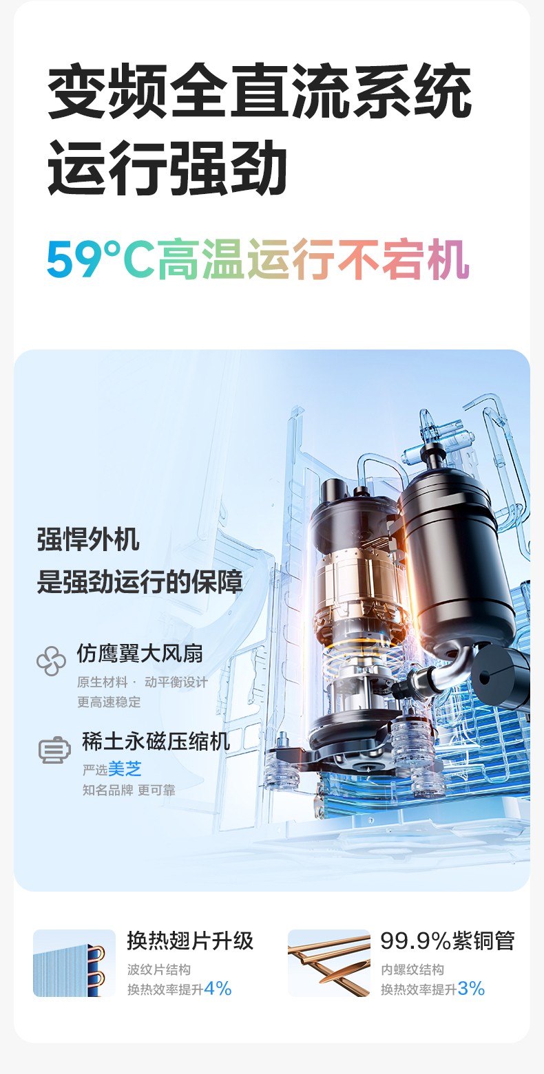 冷暖高效,20秒即刻速爽。性能强劲且稳定,省电·速爽可兼得。16分贝轻音运行,57°℃高温自清洁专利,出风安静又洁净。