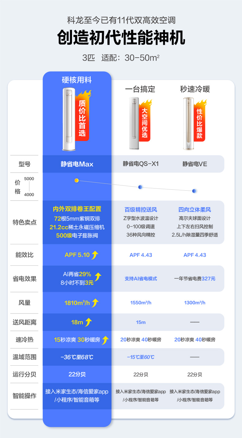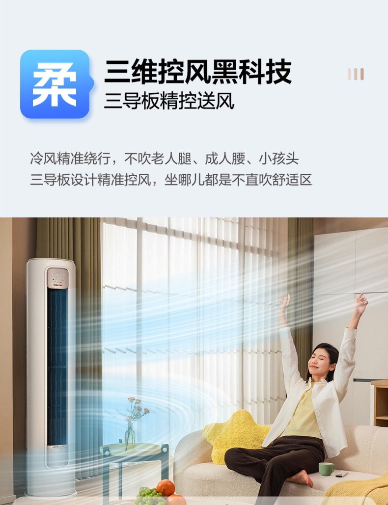 一款配置高、性能强、出风柔、又省电静音的柜机